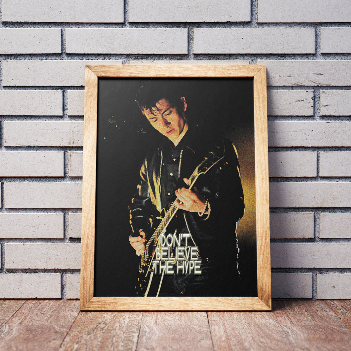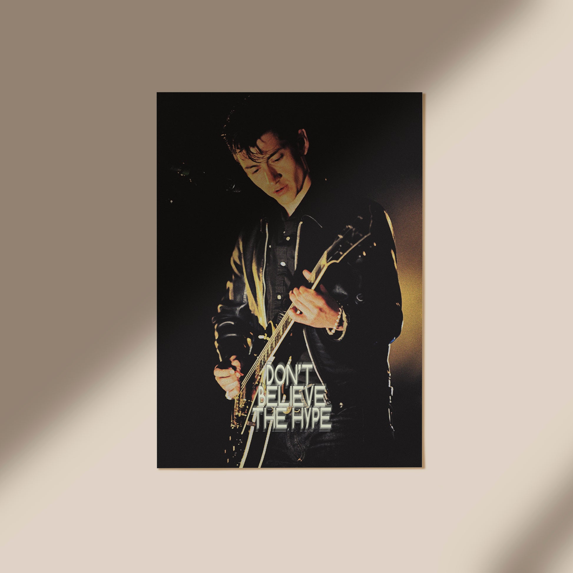 Alex Turners famous words 'Don't believe the hype' kicking back at the media is encapsulated in this sleek print finished on Matte 180 gsm paper.
