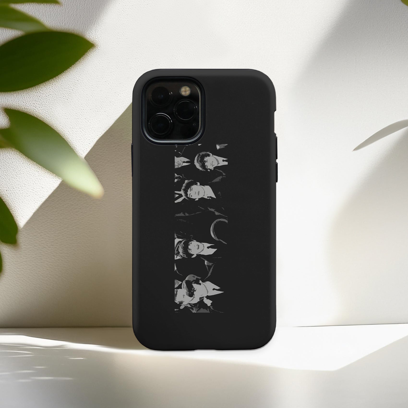 Protect your phone in style. Our tough cases combine a shatterproof outer with a soft silicone lining for maximum protection. Featuring a premium wraparound print with a matte finish. They’re durable, lightweight, and wireless charging-ready. This design features a grey outer shell wrap around and a black inner silicone lining.