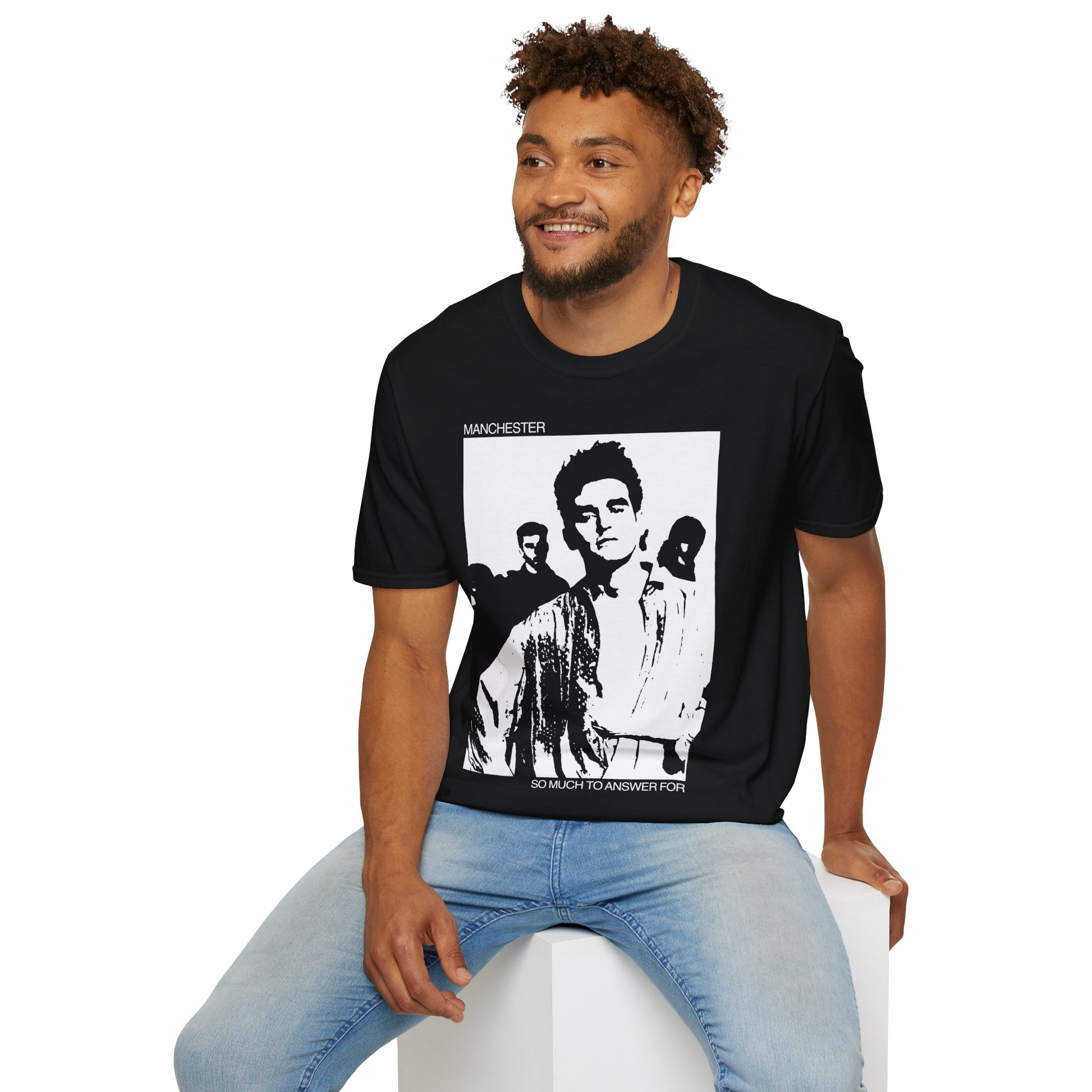 Manchester soul, immortalised in monochrome. The Manchester So Much to Answer For tee channels the grit, poetry, and attitude of the city’s most iconic music era. Bold, minimalist, and unapologetically northernManchester soul, immortalised in monochrome. The So Much to Answer For tee draws on the haunting lyricism, sharp wit, and defiant spirit that defined the city’s most influential indie era. A bold, minimalist homage for those who still find beauty in melancholy and poetry in rebellion.