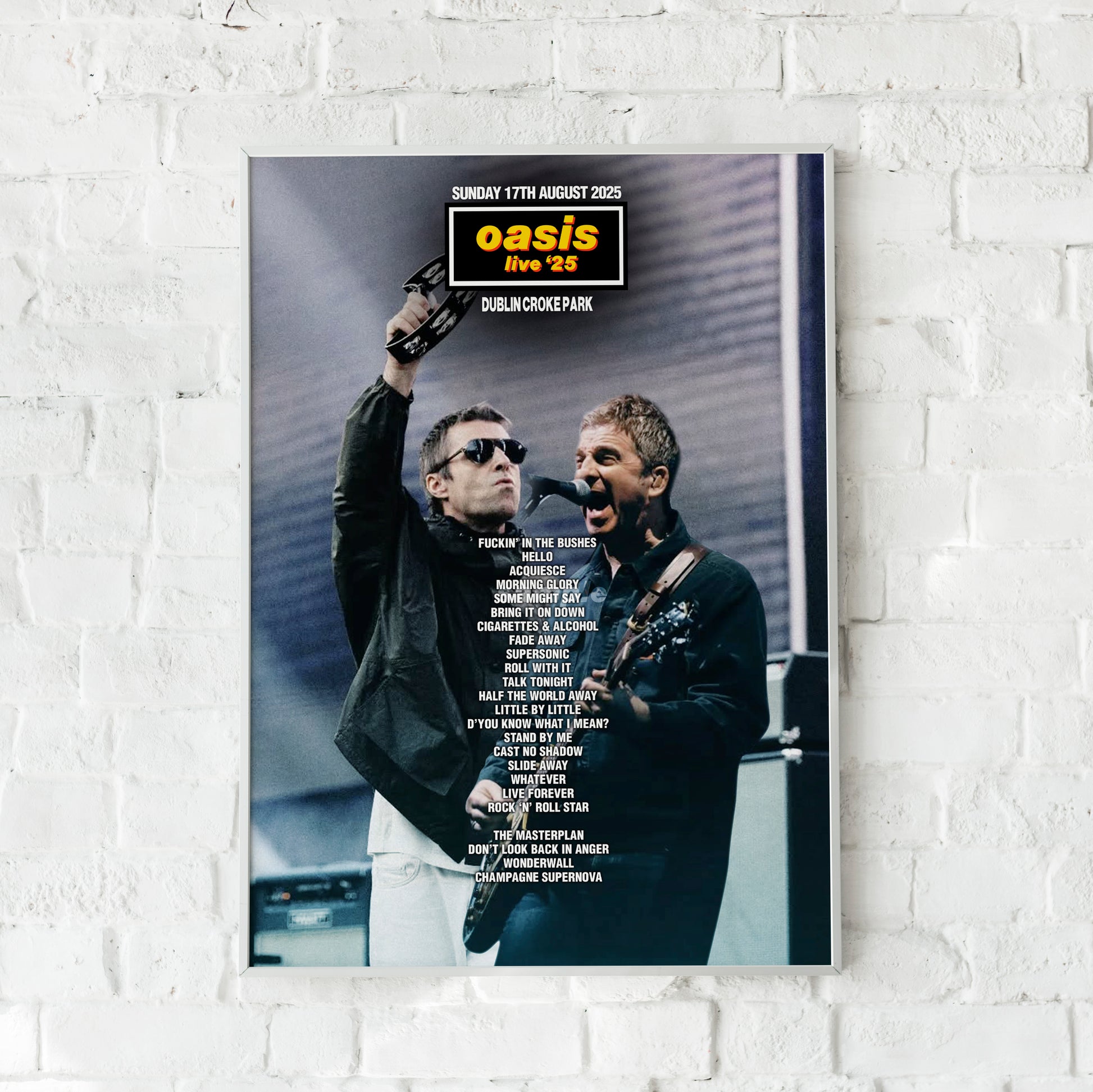 Celebrate an unforgettable night of music with this stunning Oasis Live '25 Dublin Croke Park Setlist Print, commemorating the iconic return performance on Sunday 17th August 2025. Printed on high-quality 180gsm matte paper, this poster captures the raw emotion and stage presence of Oasis as they delivered a powerful set at Croke Park.