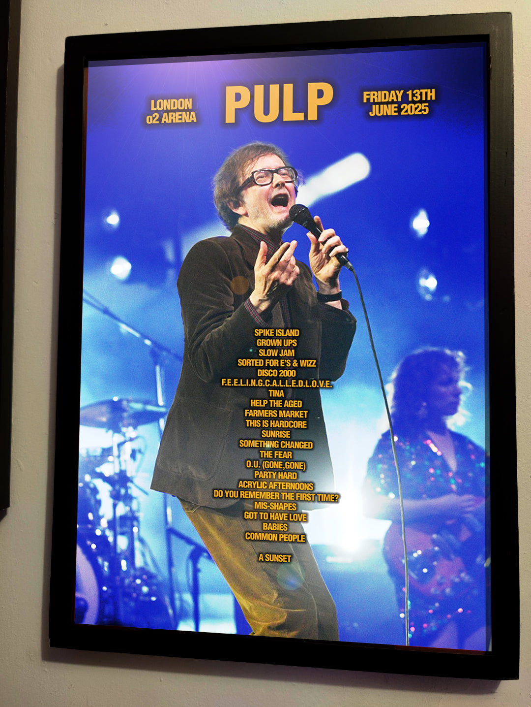Celebrate an unforgettable night of music with this stunning Pulp Manchester Co-op Live Setlist Print, commemorating the iconic performance on the 21st June 2025. Printed on high-quality 180gsm matte paper, this poster captures the raw emotion and stage presence of Jarvis Cocker as he delivered a powerful set at Manchester's Co-op Live.