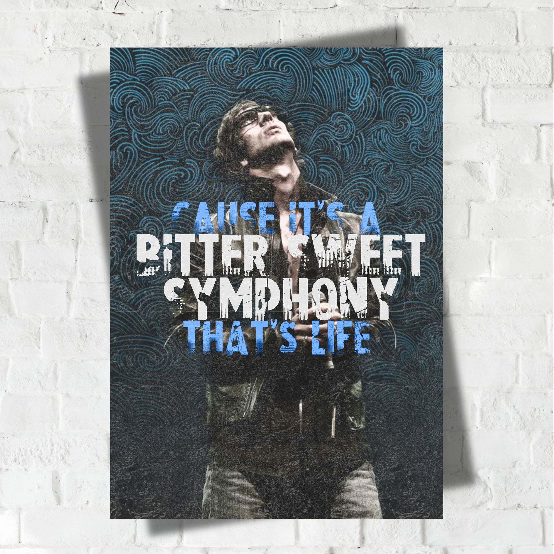 Bring one of the most iconic anthems of the 90s into your space with this bold “Bitter Sweet Symphony” lyric print inspired by The Verve’s timeless track. Featuring the powerful line “Cause it’s a bitter sweet symphony, that’s life” and an image of frontman Richard Ashcroft mid-performance, this art print captures the emotion and energy of the Britpop era.